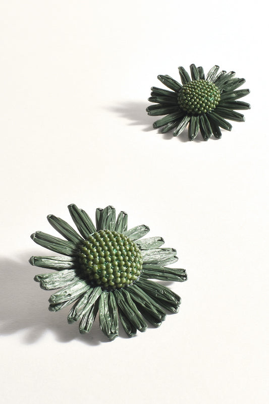 Large Daisy Stud Earrings - Olive