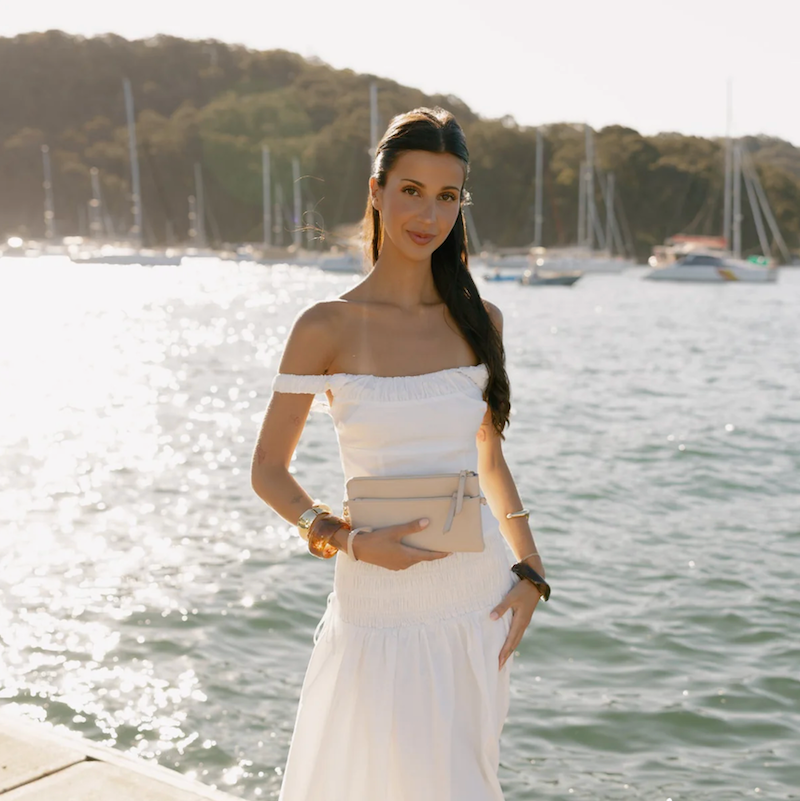 The Jessie Crossbody Clutch combines modern elegance with everyday versatility. Crafted from premium vegan leather, it features a compact design with two detachable options: a sleek wristlet strap and a crossbody strap, so you can style it your way. Whether carried in hand, worn crossbody, or on the wrist, it’s the perfect piece to take you from day to night with ease.
