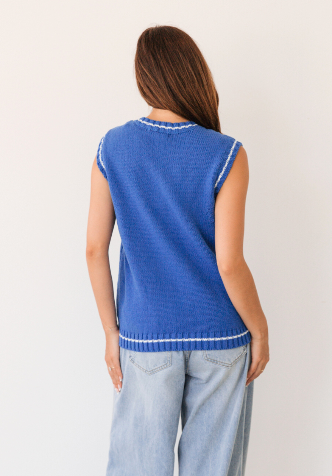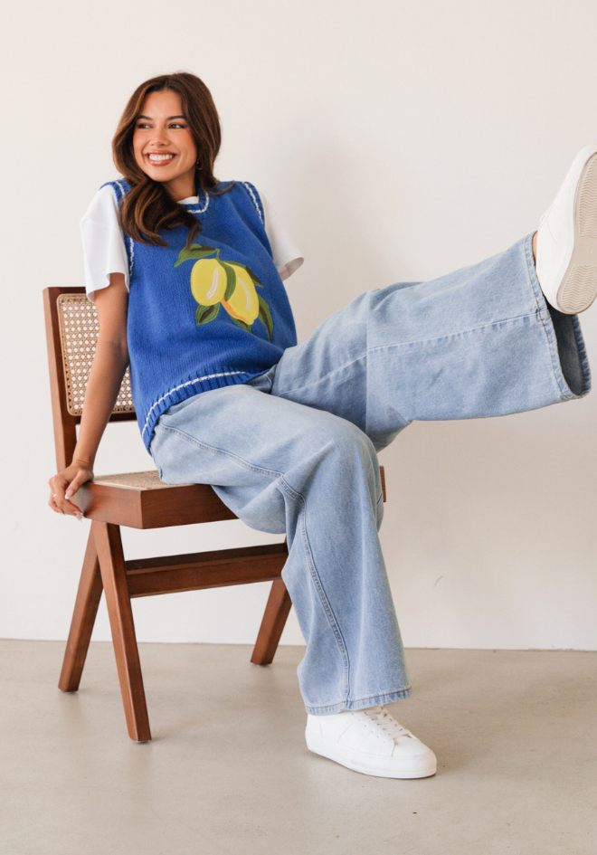 The gorgeous lemon Knit Top is just so fresh and vibrant! Made from 100% cotton it is perfect on its own for warmer days, also will work well into the trans season layered with a white tee or button up shirt. Great back with denim, while white helps bring to out the white trim detail even more!