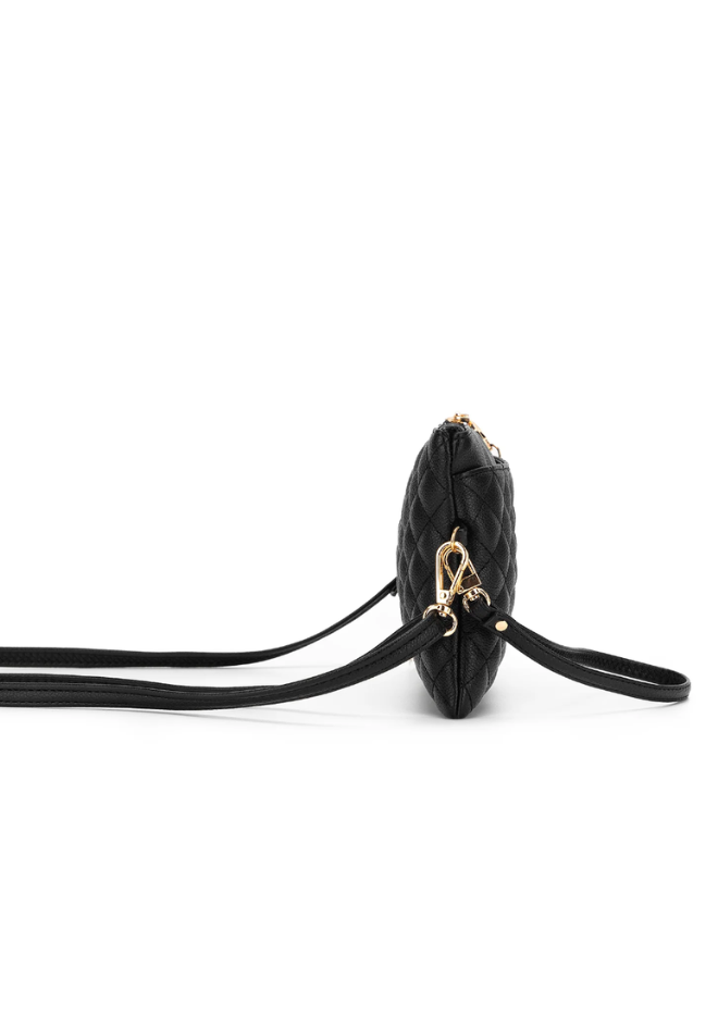 Chic and compact, the Odessa Black Quilted Crossbody Wristlet is designed to elevate your everyday style.