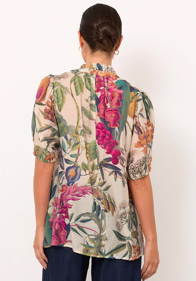 The Sandra Seville Print Top is designed in an exclusive adorne print and features a V-neckline with a tie closure and a subtle frill detail. Finished with short sleeves, elasticised cuffs and a straight hem, the style is unlined and sheer.